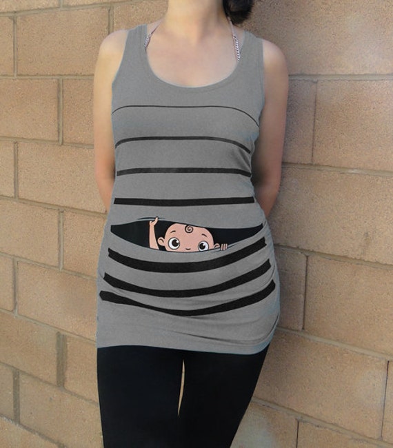 First off, this isn't cute. It is far, far away from funny. Is your child preparing to escape the womb, or prison? Are you growing a future convict? Is that what we wish to convey here?
